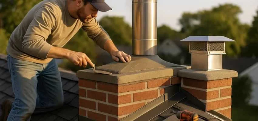 A proper crown protects the top courses. We form a reinforced, sloped crown with a drip edge and an expansion gap around the flue tile, preventing saturation and freeze damage in Brisbane, Erin.